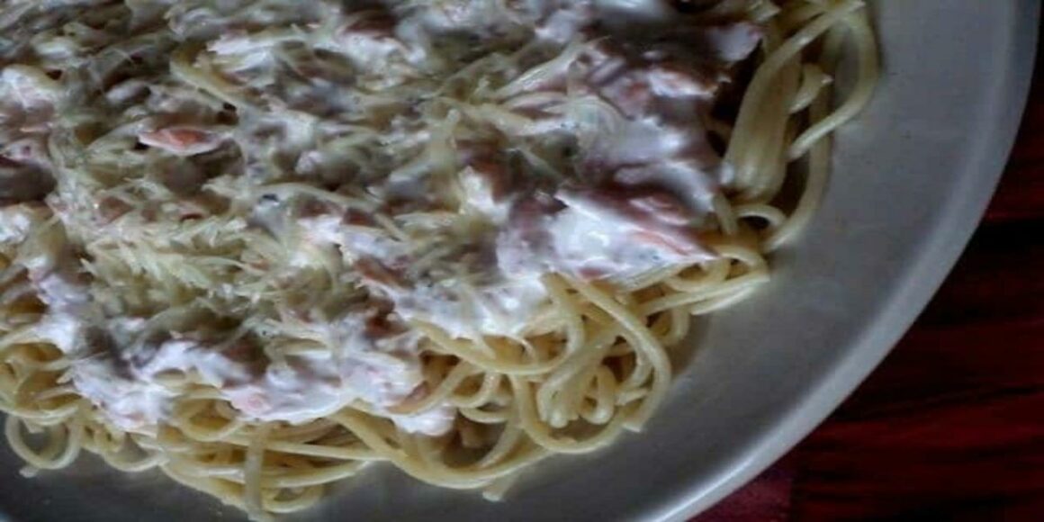 - Colocar a massa numa travessa ou prato (se preferir pode colocar em quatro pratos e servir assim), e verter por cima o preparado do salmão. Para completar salpicar com queijo ralado por cima.